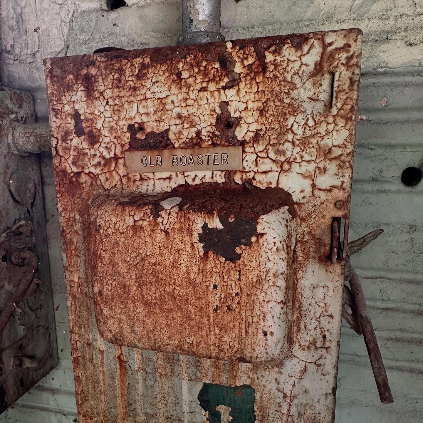 A one-ounce H&H Spices cumin packet that turned up in McAllen, TX. Another small addition to the H and H Spices line, alongside the nutmeg tin and pepper can already in the collection. The tin carries the same shared H and H Spices label the nutmeg and black pepper examples use — dark blue ground with a red “H AND H / BRAND / SPICES” panel at the top, a pale blue “CUMIN / One Ounce Net” banner in the middle, and a red “Packed for Hoffmann-Hayman Coffee Co. / San Antonio, Texas” block at the bottom, framed in thin gold and green borders. Rim rust at the top and bottom, but the paper label is otherwise intact and fully legible. The “Packed For” line is the same wording that runs across the other H and H Spices tins — the running open question the collection keeps circling is whether the spice line was produced in the factory itself or co-packed elsewhere and labeled for H and H.