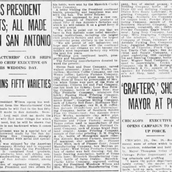 Sends President gifts — all made in San Antonio (Manufacturers’ Club), 19 Dec 1915 December 19, 1915 2 minute read